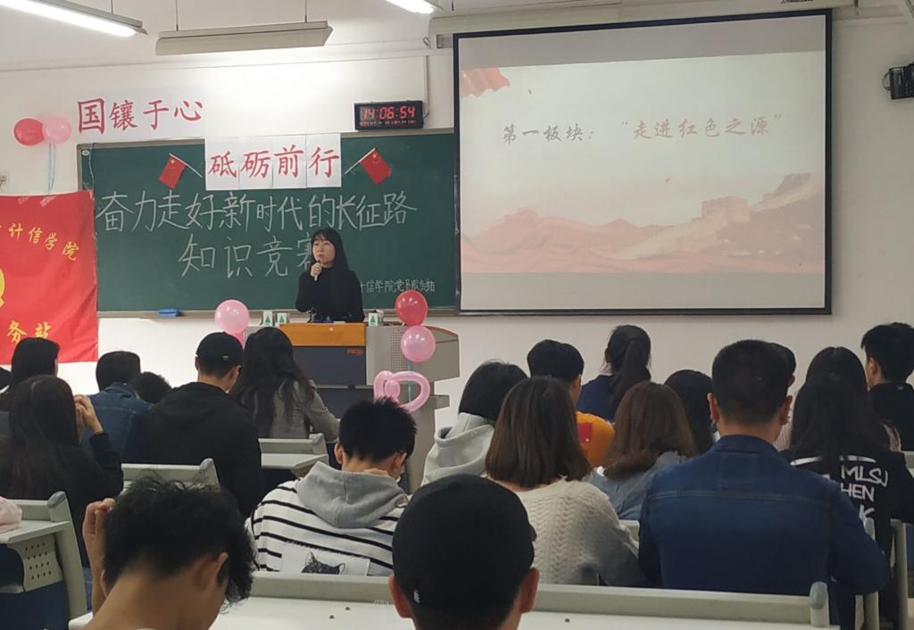 为推进“不忘初心,牢记使命”主题教育,引导入党积极分子坚定理想信念,进一步加强爱国主义教育、弘扬革命精神,2019年11月1日下午,计信学院党员服务站在南岸校区慧智楼90206教室举办了以“国镶于心,砥砺前行”为主题的“奋力走好新时代的长征路”知识竞赛。党员服务站指导老师李菁、党服学生干部及70余名入党积极分子参加了此次活动。