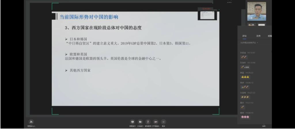 王刚校友主要从当前国际形势对中国的影响、中国经济形势对就业的影响、大学生应该秉持什么样的就业观(包含社会和用人单位的需求、就业城市和行业的选择等)、疫情下的就业机会、不同年龄阶段的发展任务等几个维度深刻地阐释了自己的观点和建议。一个半小时的讲座干货满满,同学们收获颇丰。最后,王刚校友耐心细致的解答了同学们在学业和职业生涯规划中遇到的困惑,为整场就业交流讲座划上了圆满句号。本次活动吸引了共600余人次的观看,受到了同学们的一致好评。