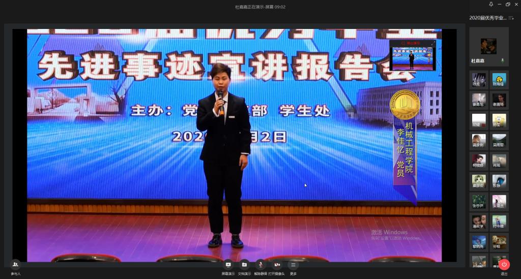 18级辅导员李菁谈到:这场“屏对屏”的特殊宣讲会,让每位师生都能一睹优秀工商学子的风采。在12个满载成长、奋斗、超越、逐梦的青春故事里,我们看见了一场场经历四年时光,从懵懂到成熟、从迷茫到坚定的美丽蝶变。对于一名辅导员而言,优秀毕业生先进事迹宣讲会就是一个生动的素材库,让更多学生汲取榜样的力量,努力从今天的“观者”成为明天的“主讲人”,让优秀流行起来!