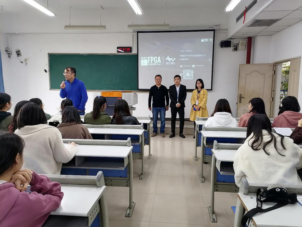 为提高本届毕业生毕业设计水平和促进学生优质就业,把好大学生本科教育最后一道教学质量关,2020年11月3日下午,2138cc太阳集团官网电子信息工程专业毕业设计指导老师与英特尔FPGA中国创新中心相关技术人员对电子信息工程专业毕业生进行了毕业设计与就业现场宣讲。系主任陆胜、副主任晏力、谭荆等指导老师和70余名本专业大四学生参加了本次宣讲会。