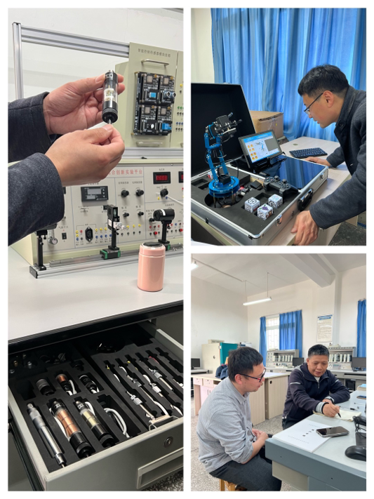 “CSY-5000传感器综合创新实验平台”是浙江高联检测技术有限公司最新款平台,除传感器和检测技术54个基础实验外,还有mesh组网传感系统,红外热成像传感系统,AI图像处理系统等,测控和自动化专业传感器及检测技术、测控网络技术、无线传感器网络技术,测控电路、嵌入式系统原理及应用、自动控制原理、运动控制技术、机器学习等课程均可在此平台开展创新实验,也可支持课程设计、毕业设计和竞赛等综合实践环节。培训现场高联公司技术人员对基础实验和创新实验分别进行了部分演示,参会老师对设备使用和实验项目的开放性设计提出了一些要求,系部资深教师江朝元、文远熔等与年轻博士们对技术问题展开了热烈的讨论,黄敏老师当场就构思出自己的《自动控制原理》可以在此平台上开设的实验项目。系部要求会后每位老师思考自己任教的课程与实验平台接口的可行性,至少设计1-2个实验项目到本综合实验平台上开展,强化学生对测控系统的概念,拓展学生眼界。
