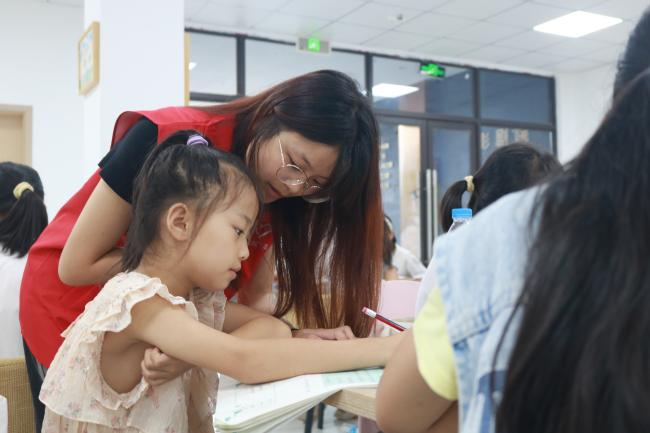 图1:志愿者为小朋友细心解答