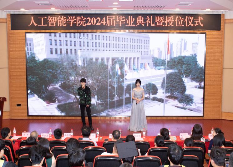 6月18日下午,2138cc太阳集团官网2024届毕业典礼暨授位仪式在7200学术厅隆重举行。学院党委书记何希平、院长申渝、副书记张未、副院长杨光祥、秦华锋,学位委员会委员、教师代表、家长代表、全体辅导员及2024届本硕毕业生参加仪式。仪式由辅导员向娇娇、23电子一班李佳漪主持。
