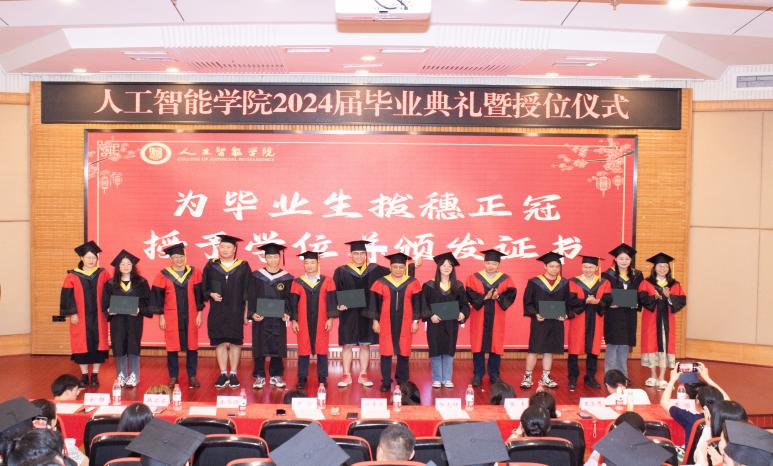 典礼由教师寄语视频拉开序幕。杨光祥副院长首先宣读了学位授予决议,学院学位委员会委员逐一为全体毕业生拨穗正冠、授予学位、颁发证书,并合影留念。