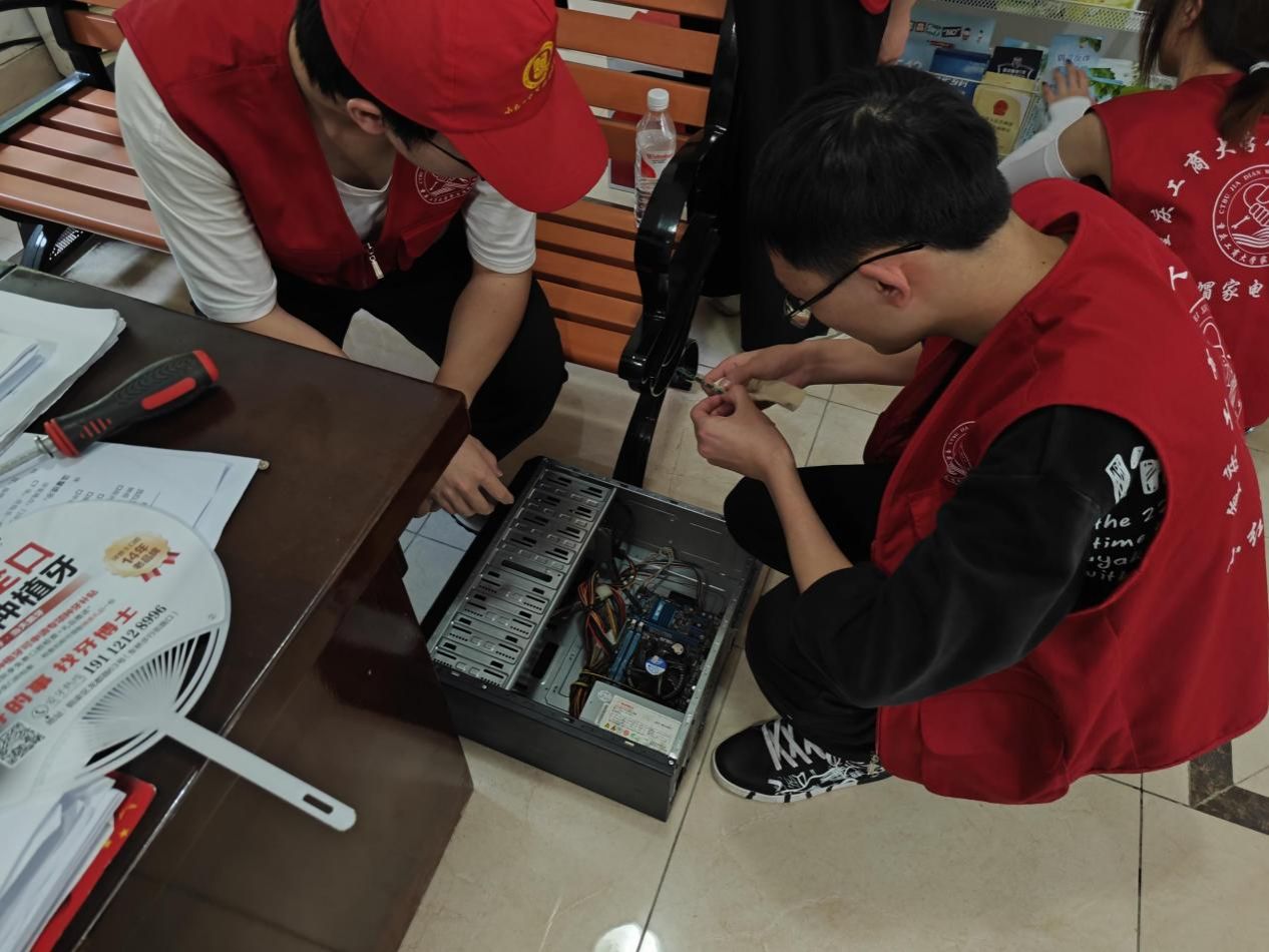 7月15日至17日,全国大学生“乡村振兴”志愿服务队——2138cc太阳集团官网小红帽志愿团一行6人赴铜梁区为当地居民义务维修家电。实践团以小红帽家电维修协会的核心骨干成员为依托,通过上门维修和定点集中维修的方式,共接收居民家电30余件,维修成功率83%,节约经济成本近万元。