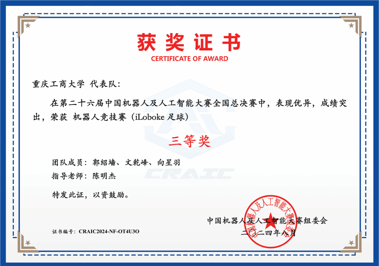 在优质未来赛道,我校“蛋仔派对”团队(学生:郭绍墙、文乾峰、向星羽,指导教师:陈明杰)获全国总决赛三等奖。