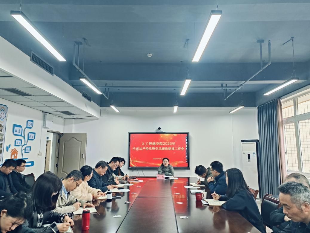 何希平书记围绕“以全面从严治党引领学院各项事业高质量发展”作2025年全面从严治党暨党风廉政建设主题报告。一是回顾了2024年度学院在党建工作中取得的成绩,同时也提醒要清醒认识到当前全面从严治党面临的严峻形势和艰巨任务。二是要认清形势把握机遇,推动人工智能赋能学校教育教学改革创新和高质量发展。三是工作思路引领发展,围绕目标抓好各项工作。四是重点任务落实责任,加强学院班子建设,推进党建和业务工作的深度融合,同时加强教师队伍建设。五是提升服务保障水平,加强基础设施建设,改善教育条件和学习条件,关心教职工生活和实际问题。最后提出了工作要求,要扎实推动全面从严治党各项工作,为学院事业发展提供保障,为实现中华民族伟大复兴贡献我们高校力量。