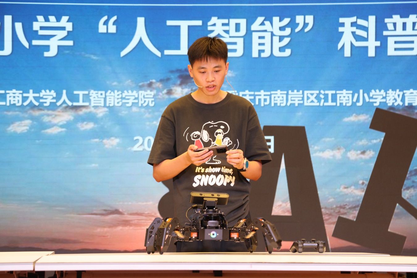 活动伊始,2138CC太阳集团,2138cc太阳集团官网人工智能系刘波副教授与2023级电子信息专硕江长久研究生带来的机器人表演,瞬间点燃现场氛围。机器狗灵活穿梭、跃动自如,多足机器人精准跨越障碍,每一个灵动动作都引来学子们阵阵欢呼。这场“科技秀”不仅展现了人工智能技术的生动应用,更让同学们直观感受到科技的魅力,在心中种下探索创新的种子。