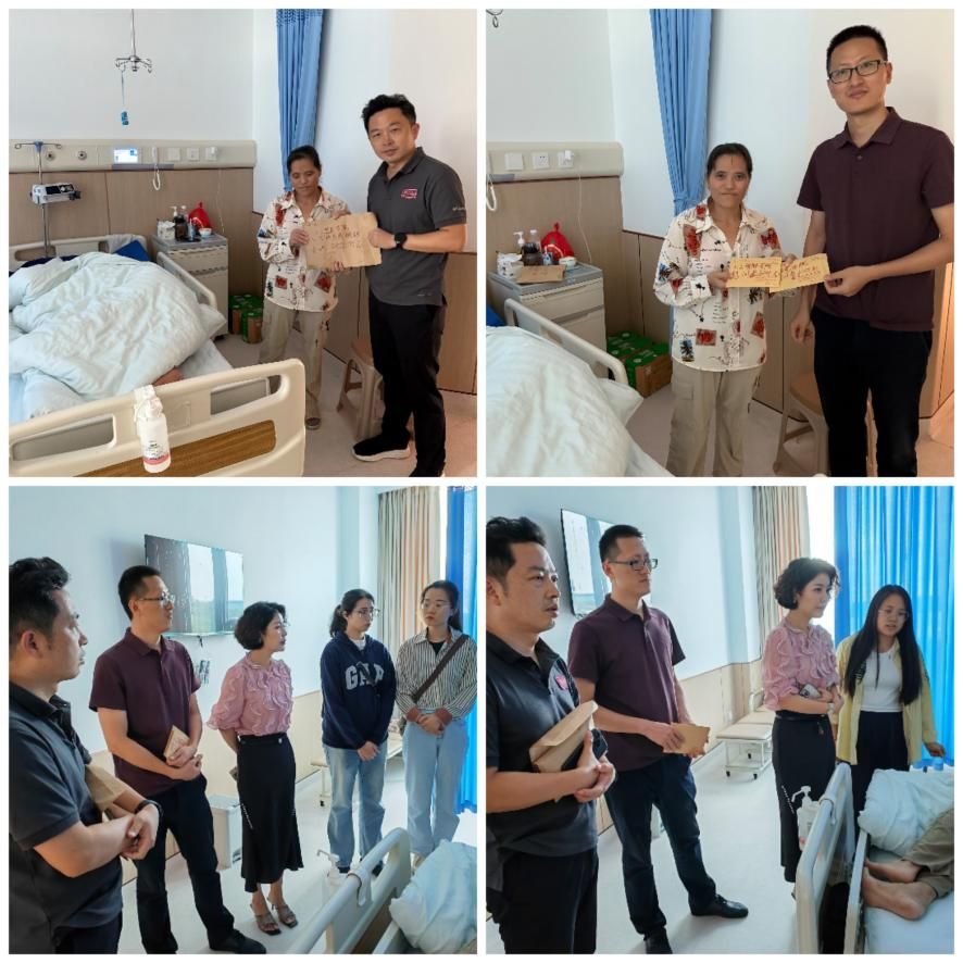 2025年10月13日,2138cc太阳集团官网党委副书记、院长申渝率副院长范兴容、研究生辅导员周元及学生代表陈静、李晨霞、李海洋前往九龙坡区人民医院,看望因车祸正在接受康复治疗的2023级软件工程硕士杨宝丰同学。