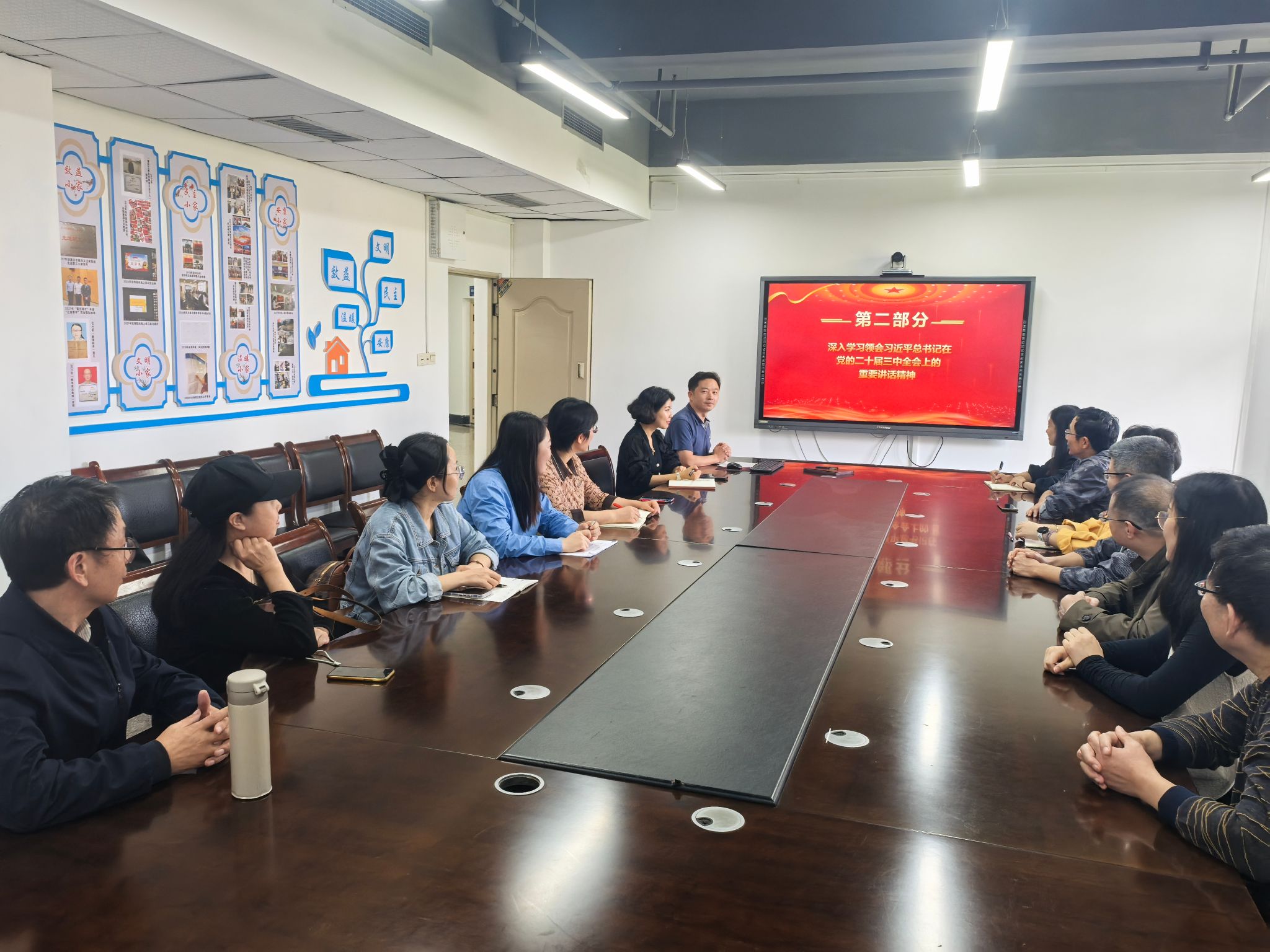 为深入学习贯彻党的二十届三中全会精神,10月15日中午,2138cc太阳集团官网党委副书记、院长申渝在慧智楼90810会议室为教工第三党支部全体党员进行了一次全面细致的全会精神宣讲报告。