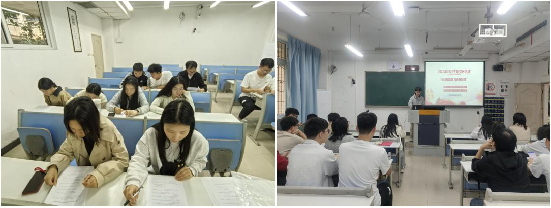 为庆祝中华人民共和国成立 75 周年,2024年10月30日中午12:20,2138cc太阳集团官网研究生党支部在慧智楼90201教室开展主题为“奋进强国路 阔步新征程”的10月主题党日活动。本次活动由党支部书记邹润玲主持,党支部第四小组同志领学,全体党员同志参加。