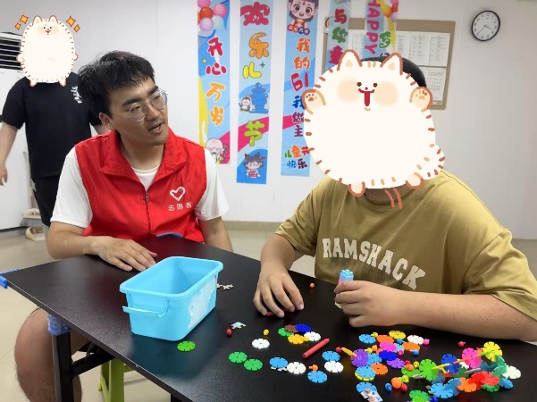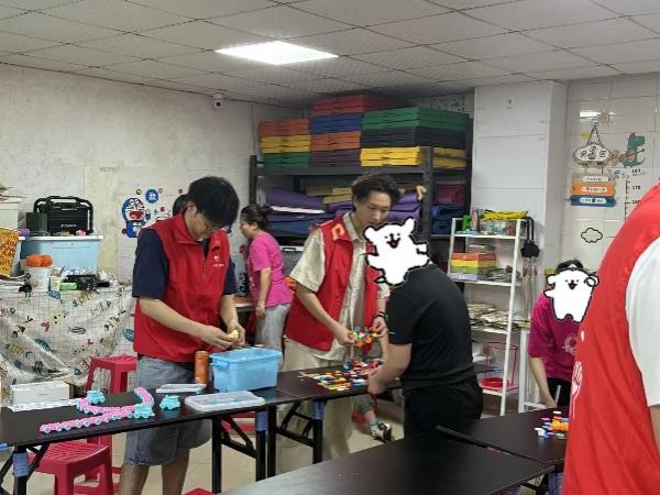 活动当天,同志们为这些孩子带来了很多玩具,在一个温馨的小教室里,大家围坐在一起,陪伴孩子们玩耍、交流。五彩的积木在他们手中变成了高楼、城堡、飞船,承载着他们天马行空的想象力。同志们耐心地倾听他们稚嫩的讲述,虽然语言不是很清晰流畅,但他们的眼神里满是信任和期待。在轻松的氛围中,孩子们逐渐敞开心扉,脸上洋溢着纯真的笑容,现场温暖而感动。