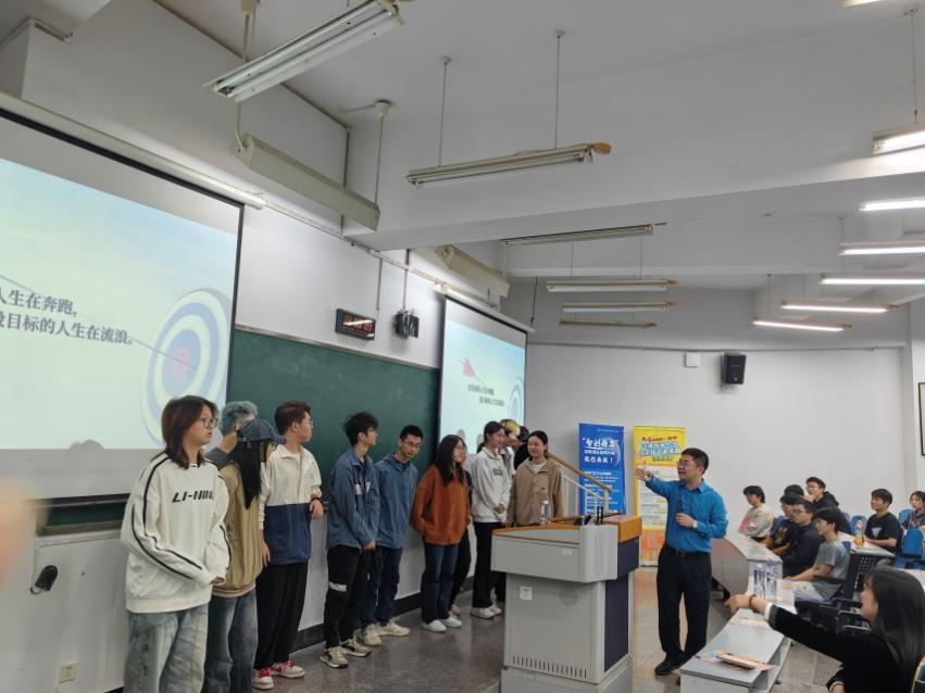 宣讲活动后,中国青年创业导师、中国就业促进会创业专业委员会委员、重庆市校企融合协会会长黄子华博士为大学生带来《大学生创业,你准备好了吗?》主题授课。黄博士首先邀请现场12位同学参加了有趣的目标达成测试,与同学们进行互动交流,随后从大学生们关注的就业环境及发展形势、求职技能、就业技能等多方面进行授课,为大家未来的就业创业之路增加动力、增强信心。