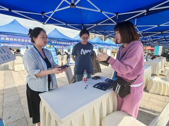 在双选会现场,学院毕业班辅导员与企业代表积极沟通,了解企业的用人需求和岗位特点,并为学生提供针对性的选岗建议和职业规划指导。