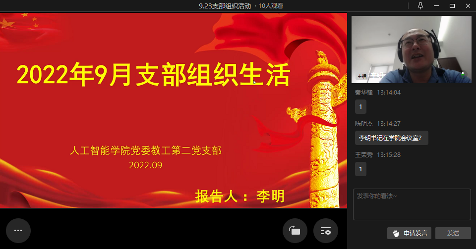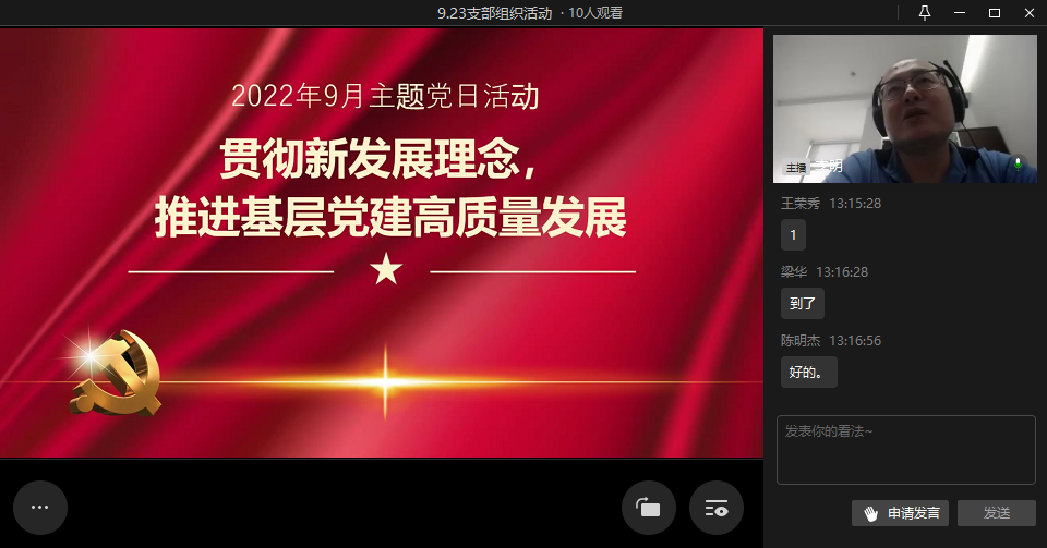2022年9月23日2138cc太阳集团官网教工二支部在企业微信以线上会议的方式开展九月份支部组织生活,活动由支部书记李明同志主持。