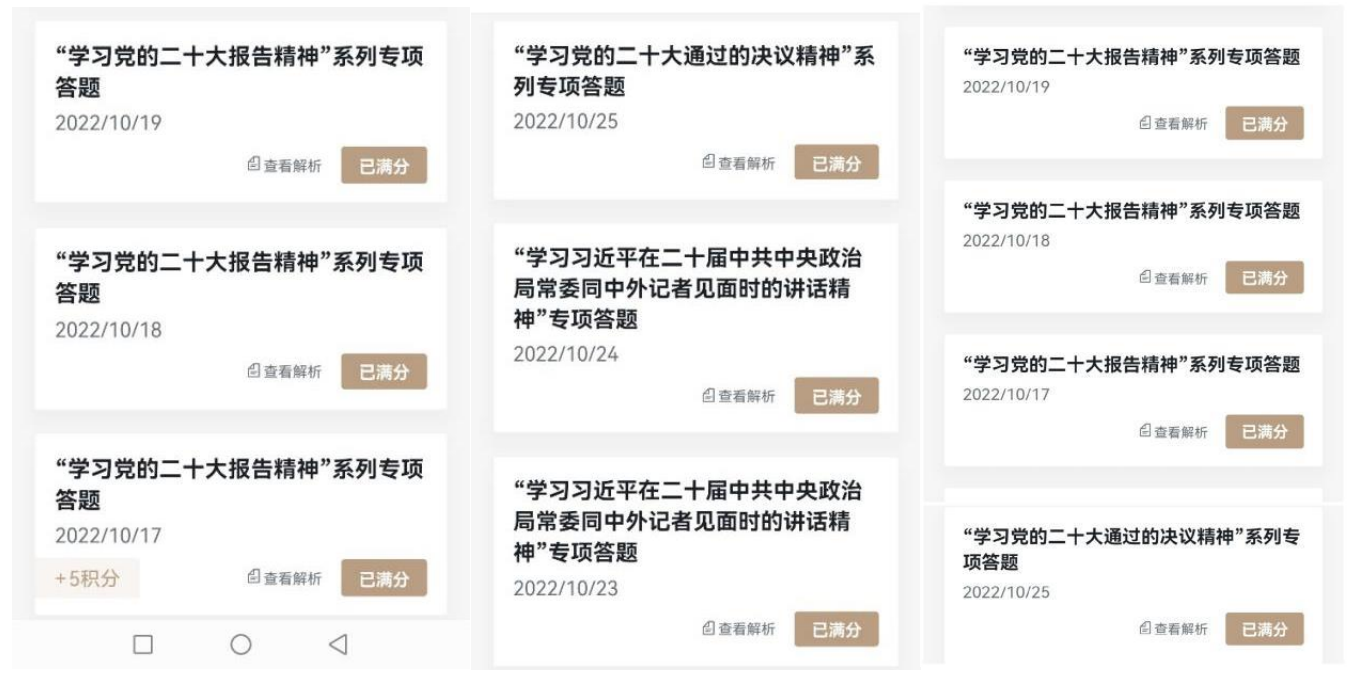 为积极营造“以赛促学、以学促行、比学赶超”的学习氛围、检验近期学习成果,支部还组织开展了“学习贯彻党的二十大精神,建立书香支部”知识竞赛活动。竞赛题目来自学习强国平台关于二十大竞赛的专题,充分发挥”学习强国学习平台”的优势作用,以党的二十大精神为指引,把学习成果转化为工作动力。