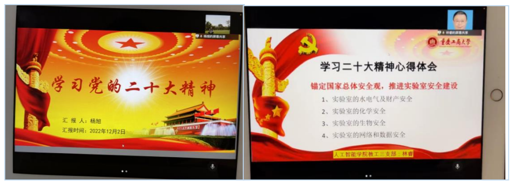 会上张翠玲同志首先领学了习近平总书记在党的二十大上报告中擘画的全面建成社会主义现代化强国的宏伟蓝图、“新时代新征程中国共产党的使命任务”和“加快构建新发展格局,着力推动高质量发展”的具体要求,学习了习总书记对教育、科技、人才工作的一体化部署。张翠玲同志解读了“教育、科技、人才是全面建设社会主义现代化国家的基础性、战略性支撑”和“科技、人才和创新的关系”,强调了新时代教育的基础性、先导性、全局性地位。然后全体党员观看二十大代表访谈录像,聆听他们关于“教育、科技、人才”关系的认识,深入学习代表们的典范故事,学习其深入贯彻落实习近平新时代中国特色社会主义思想、爱岗敬业、敢于担当、开拓创新、无私奉献的优秀品质和精神风范。支部全体党员深受鼓舞,纷纷表达学习心得。