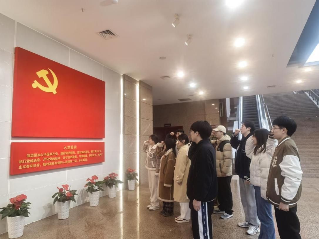 师生党员面向党旗,庄严宣誓。坚定的誓言在展厅内响起,激励着大家不忘初心、牢记使命。