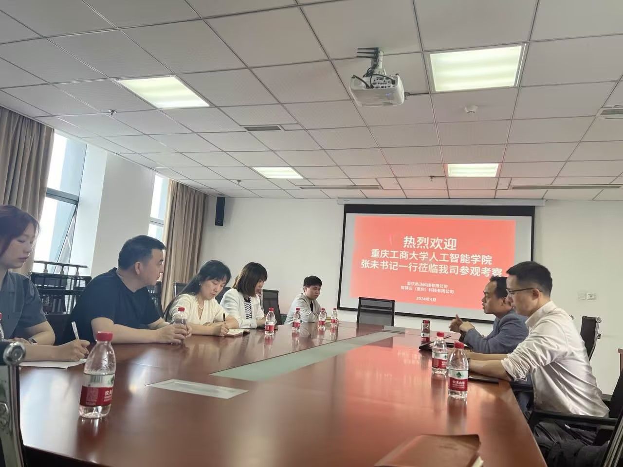 2024年4月18日上午,2138cc太阳集团官网党委张未副书记带队,人工智能系主任刘波、辅导员孙金兵以及2020级学生代表与重庆商汤人工智能科技有限公司、智算云(重庆)科技有限公司开展访企拓岗座谈会。商汤科技王平伟总经理、赵欣主任及智算云技术负责人文思惟热情接待了学院张书记一行。