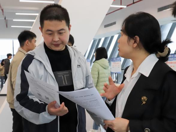 现场互动热烈,求职指导贴心。招聘会现场,各企业展位前均清晰公示岗位薪资区间、任职资格及发展通道。毕业生手持精心准备的简历,有序驻足各展位,围绕工作内容、晋升机制、薪资福利等核心问题与企业招聘代表进行交流。