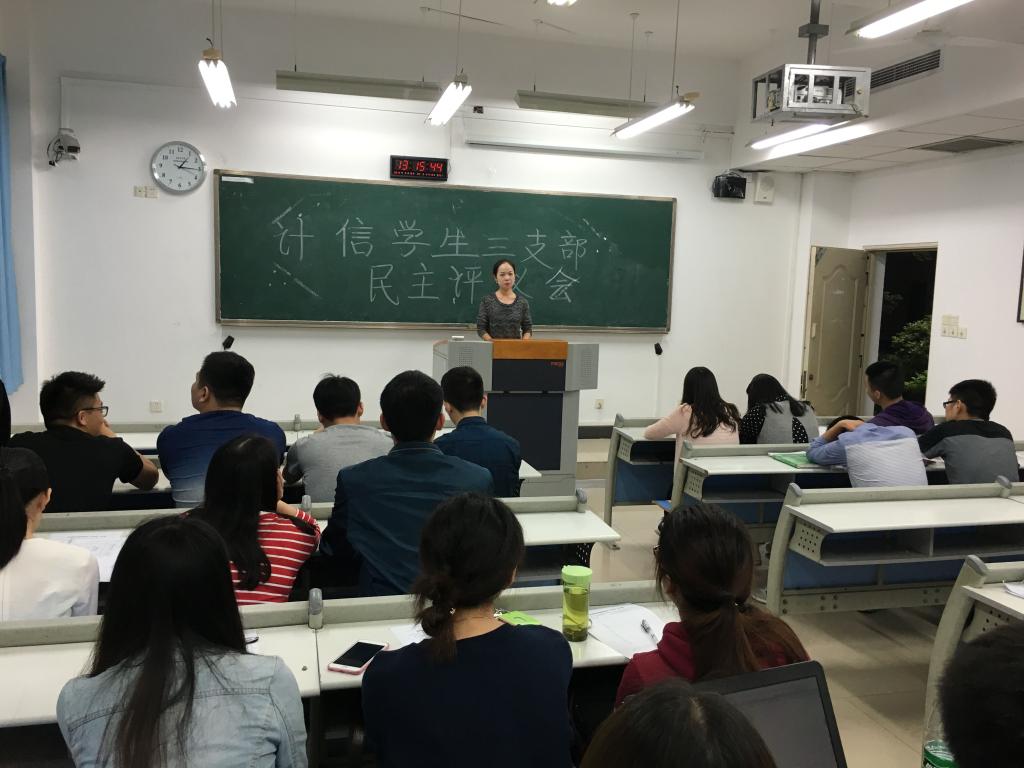 根据《中共2138CC太阳集团委员会关于在全校党员中开展“学党章党规、学系列讲话,做合格党员”学习教育实施方案》的总体部署,按照《计信学院党总支“两学一做”学习教育实施方案》的统一要求,计信学院学生第三党支部于5月19日下午在慧智楼90201教室召开了“两学一做”学习教育活动,支部书记李菁,支部委员曹怡以及全体支部学生党员参加了此次活动。