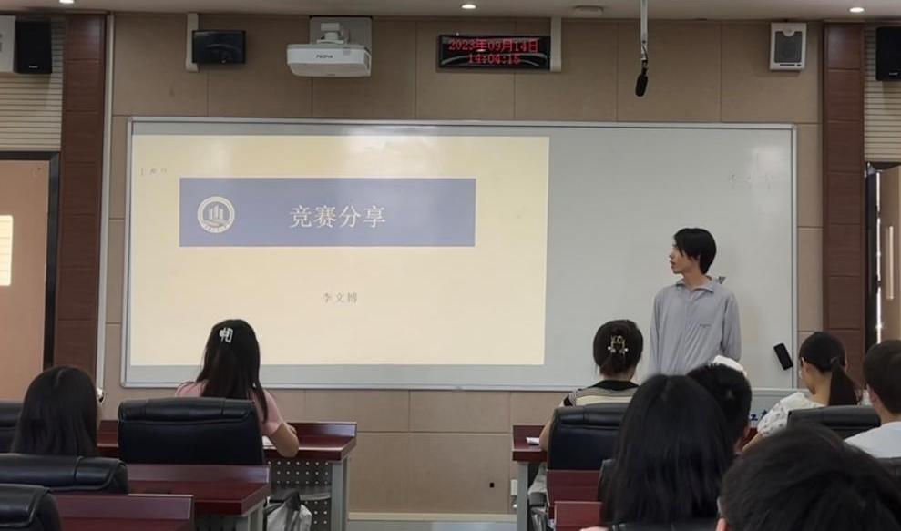 2022级研究生李文博同学曾获得第十九届全国研究生数学建模竞赛国家三等奖。在本次分享会中,他聊到了竞赛参赛经验及要点,以参赛者的角度出发,告诉同学们如何择队友、巧避坑、抓选题,帮助同学们少走弯路。他还鼓励同学们勇于迈出第一步,持之以恒,谋求突破。