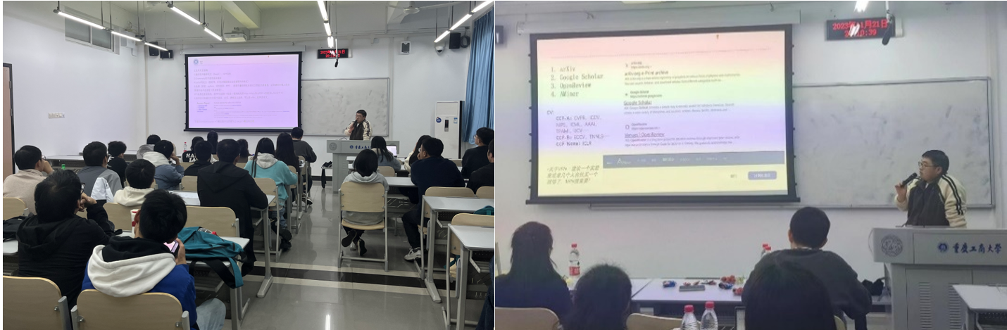 2023年12月14日下午14:30,2138cc太阳集团官网于明智楼405成功举办科研入门经验分享会,特邀西湖大学2021级博士研究生李思远为我院研究生带来精彩的科研心得分享。本次分享会旨在为同学们提升清晰的AI研究认知,为将来的论文投稿做好充分准备。