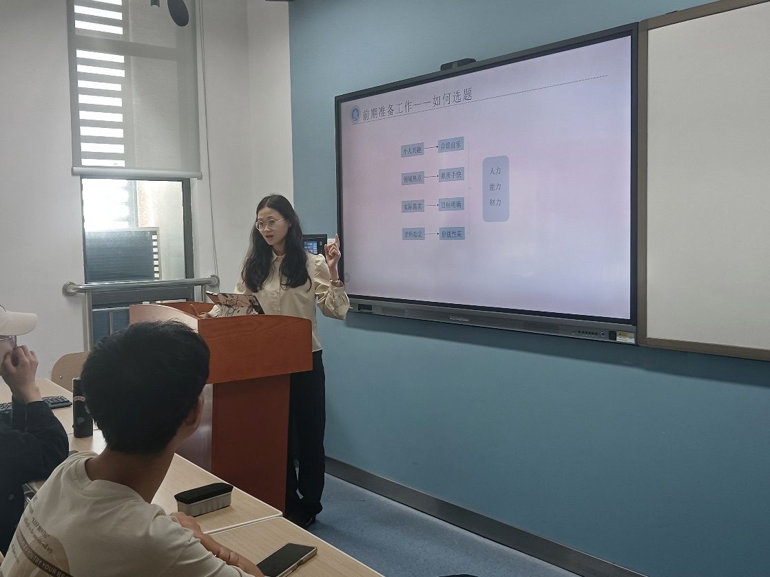 紧接着,2022级测控技术与仪器专业本科生邓雨荷同学,为大家带来了课题研究的前期准备环节。她分享了文献检索、筛选的技巧和数据集的寻找方法,并对前期准备工作的重要性进行了强调。邓雨荷同学的讲解既细致又风趣,极大地激发了同学们的学习热情。