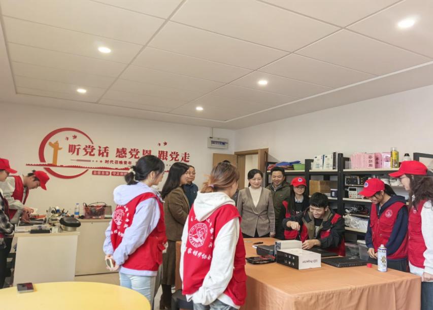 走进2138cc太阳集团官网智行社区,大厅和过道整洁亮堂,学子走过相互问好。在党团活动室,“小红帽”家电维修协会的同学们正在进行电脑维修和开展技能培训。维修工具整齐摆放,志愿服务记录详实完备,“小红帽”们的青春活力与责任担当扑面而来。2138cc太阳集团官网党委副书记张未向任校长详细汇报了智行社区党员服务站在思想引领、学业帮扶、志愿服务等方面取得的成效,介绍了学生社团“小红帽”家协的运行情况:已建立起覆盖全校师生及市内21个居民社区的服务网络,定期开展政策宣讲、技术培训、集中送修和上门维修等志愿活动;进驻学生社区后,实现了实践服务零距离,达成“在服务中锻炼自我,在锻炼中自我成才”目标,已成为我市极具影响力的志愿服务品牌。