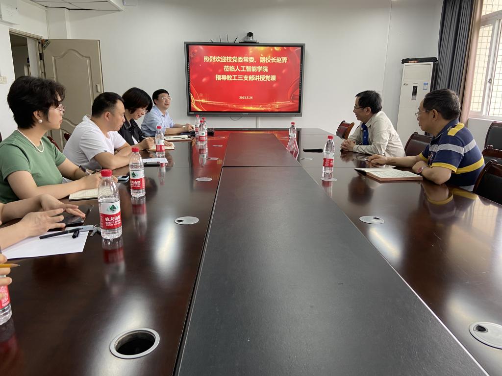 最后,赵骅对全体党员提出几点希望和要求:一是要坚决贯彻落实习近平总书记重要讲话精神和党中央部署,把开展主题教育学习是当前最重要的政治任务扛在肩上、放在心上、付诸在行动上,每一个党员同志要坚持读原著、学原文、悟原理,坚决用习近平新时代中国特色社会主义思想凝心铸魂,促进发展;二是要紧跟时代发展脚步、突出创新发展。面对人工智能、物联网、云计算等新一代信息技术兴起带来的机遇与挑战,我们要认真思考、加强学习,加强实践探索和工作落实,把握规律,开拓创新,不断提升教学、科研能力。三是要统筹发展,践行初心使命,用主题教育指导实践、推动工作的根本遵循,踔厉奋发,以高质量党建引领学院各项事业高质量发展。
